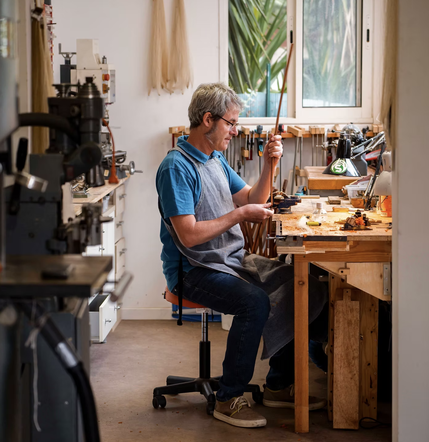 Élève de Christophe Schaeffer, ce grand archetier m'a appris les techniques traditionnelles de l'archèterie française pour aller à la recherche de la maitrise d'un savoir-faire minutieux . Il m'a confié ce qu'il a reçu lui-même de son Maître, Bernard Ouchard, et m'a partagé son expérience.